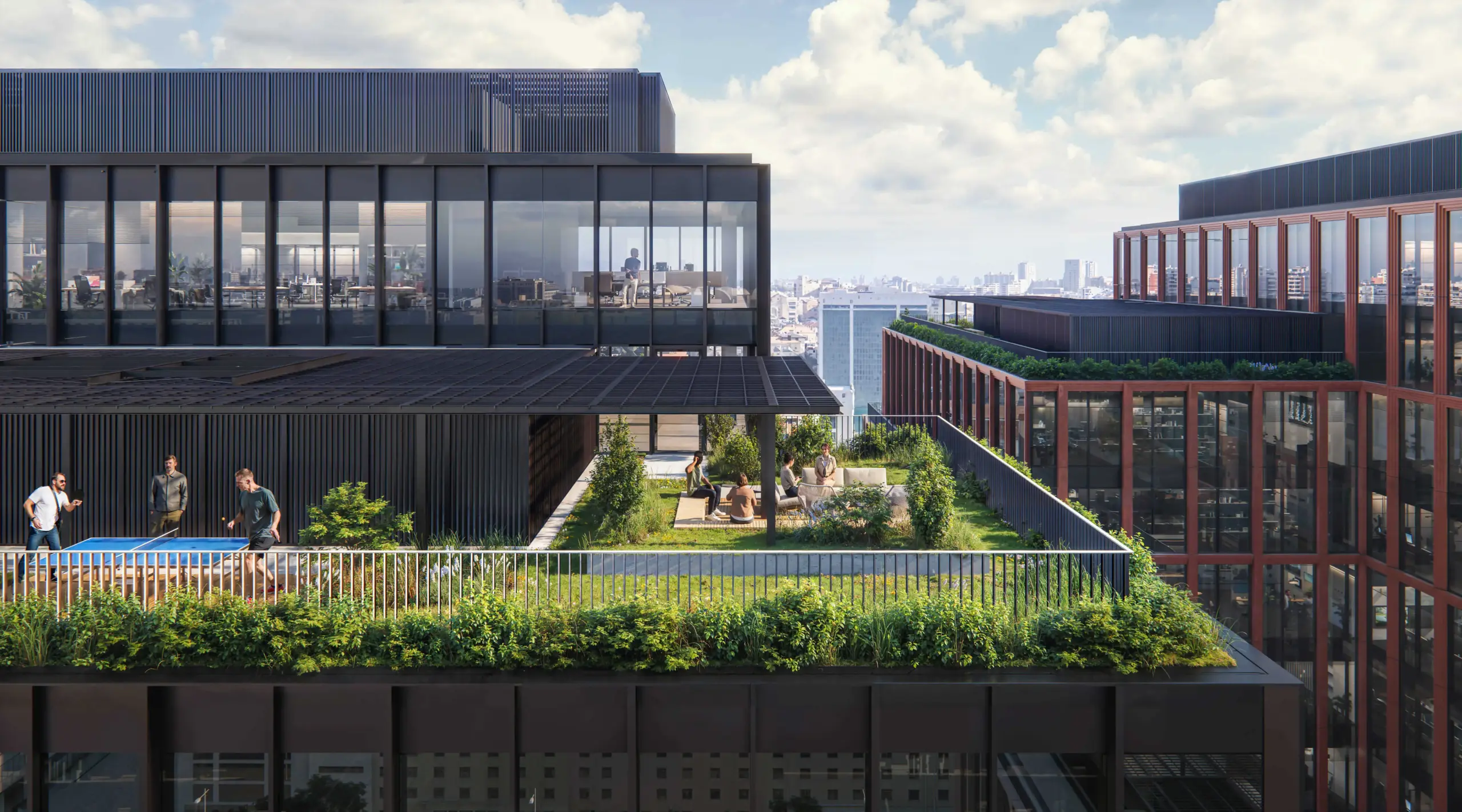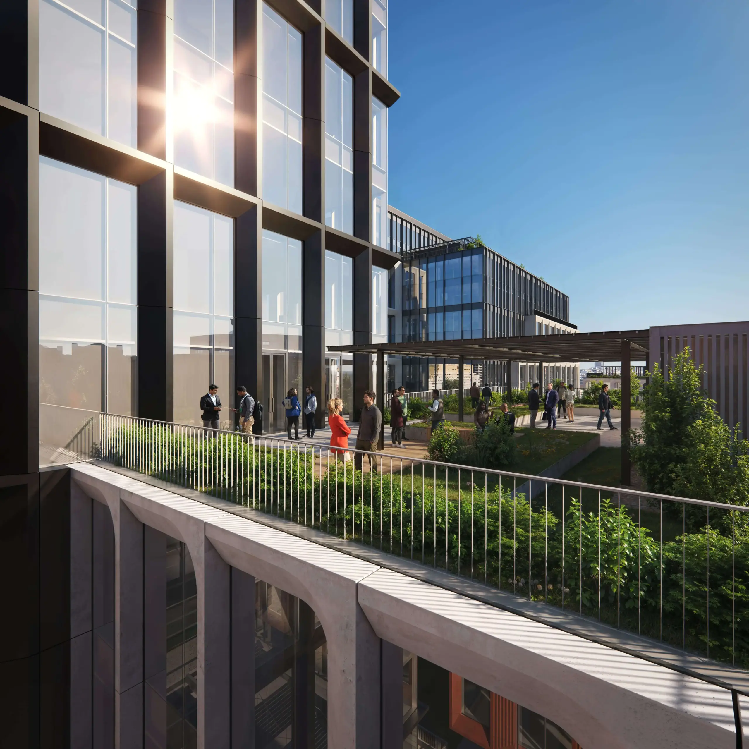Composto por 6 edifícios de escritórios distintos, cada um com a sua própria expressão arquitectónica inspirada na cultura e no tecido urbano da cidade, os escritórios foram concebidos para promover ligação, interação e vida urbana. Este projeto redefine a forma como o trabalho se integra na cidade, combinando escala, conectividade e bem-estar num único destino central.